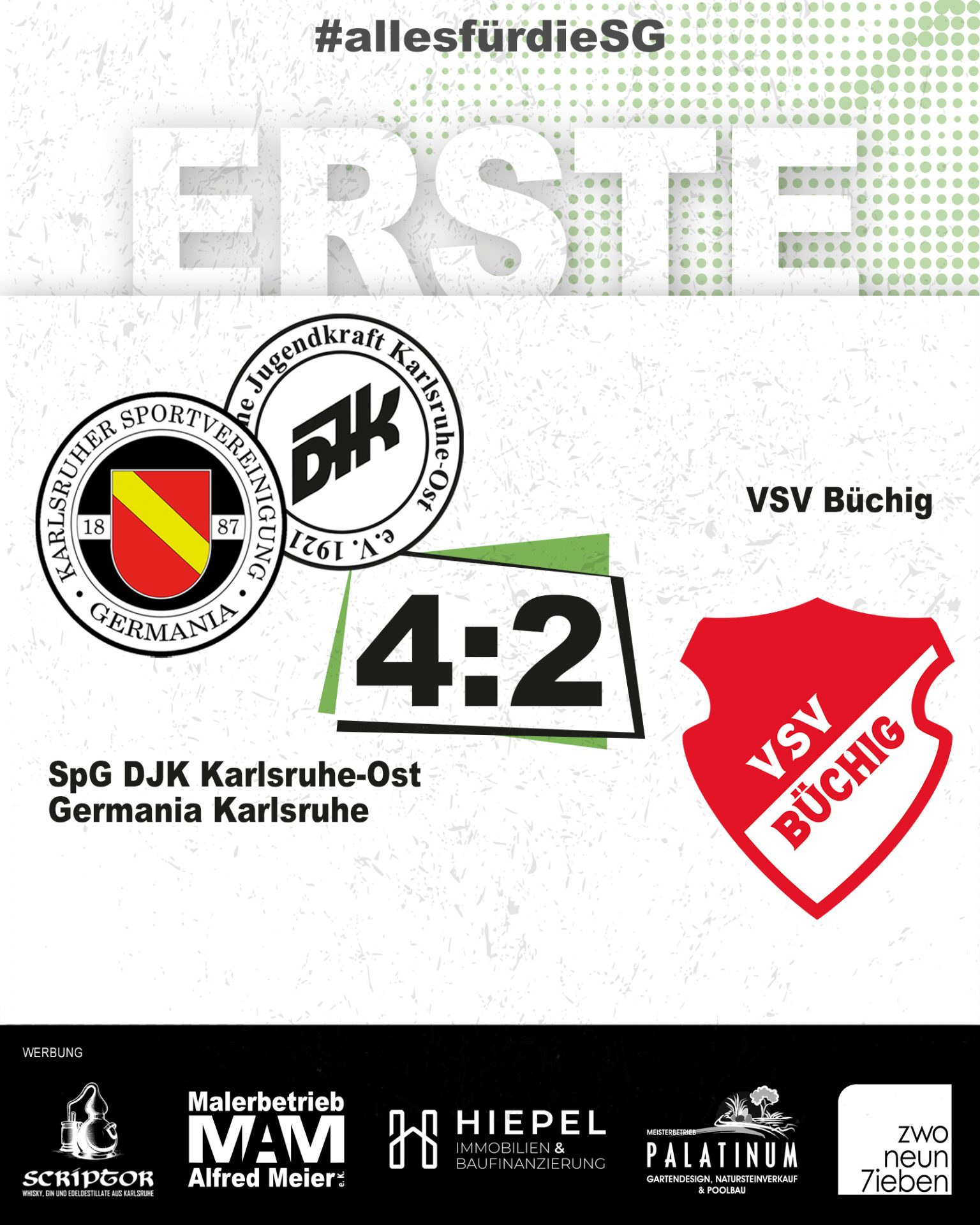 Nach dem Seitenwechsel zeigte unsere SG dann ihr anderes Gesicht: Spielertrainer Steffen Lenhard fand in der Kabine offenbar die richtigen Worte. Mit viel Tempo und Entschlossenheit drängten wir Büchig in die eigene Hälfte und stellten das Spiel innerhalb weniger Minuten auf Sieg. In der 50. Minute traf Maximilian Willemsen zum 2:1, ehe erneut Adrian Grimm nach einer herrlichen Flanke von Tobi Kircher auf 3:1 erhöhte (56.). Nur kurz darauf kamen die Gäste nach einer Unachtsamkeit in unserer Abwehr noch einmal zum 3:2-Anschluss (58.), doch die passende Antwort folgte prompt: Hussein Baydoun verwandelte in der 69. Minute einen Foulelfmeter sicher zum 4:2-Endstand.