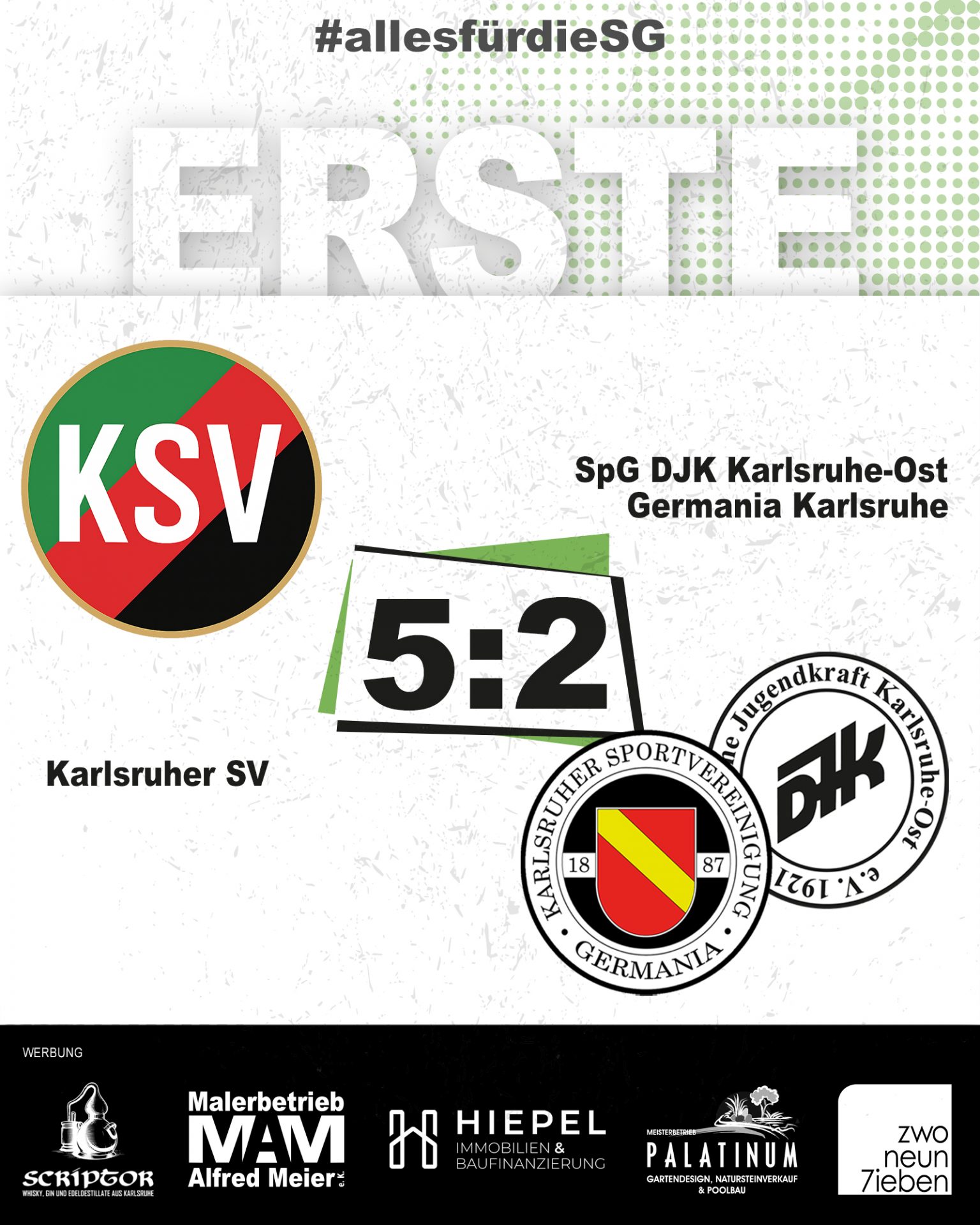 Unsere Erste Mannschaft erwischte beim Karlsruher SV einen rabenschwarzen Start. Die erste Halbzeit fand aus unserer Sicht kaum statt – wir kamen weder in die Zweikämpfe noch ins Spiel, während der KSV das Geschehen klar bestimmte. Folgerichtig fiel das verdiente 1:0. Nach dem Seitenwechsel zeigte sich die SG DJK Ost/Germania Karlsruhe deutlich verbessert, agierte mutiger und gestaltete das Spiel nun offen. Gerade in dieser guten Phase traf der KSV nach einer perfekten Flanke per Kopf zum 2:0. Danach mussten wir offensiver werden, wodurch Räume entstanden, die der Gastgeber eiskalt nutzte. Zwei starke Tore von Marko Capakovic (76., 85.) sorgten zwar noch für ein positives Ausrufezeichen, änderten aber nichts mehr am Endstand von 5:2. Mit einer anderen ersten Halbzeit wäre vielleicht mehr drin gewesen – jetzt heißt es: Mund abwischen und nächste Woche im Hardtwald gegen die SG Karlsruhe Wiedergutmachung betreiben.