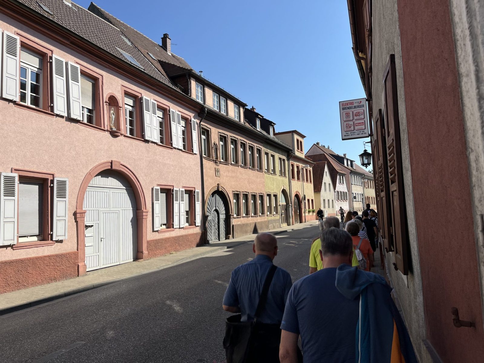 In Bruchsal angekommen, war der 1. Treffpunkt der Reisegruppe in der Nähe des Bahnhofes mit der vorab engagierten Stadtführerin Frau Matzner. Frau Matzner erklärte kurz, was uns heute erwartet und schon ging es bei strahlendem Sonnenschein – ja Kaiserwetter – (wenn Engel reisen ) mit der Gruppe los !