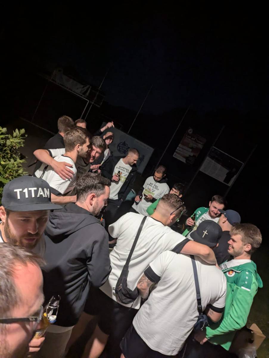 Jonatan stand am Grill, Fleisch und Wurst für alle, Kaltgetränke ohne Ende – und als die ersten Sonnenstrahlen kamen, stand ein harter Kern um 5:30 Uhr nochmal auf dem Platz zum symbolischen Freistoß-Training.