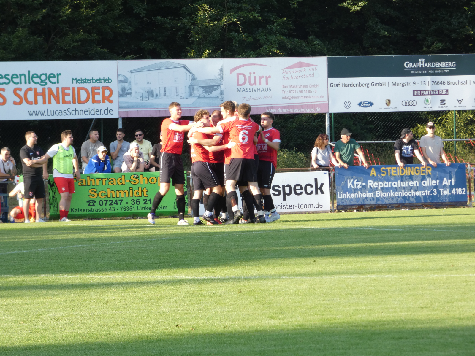 Bei bestem Sommerwetter und vor rund 500 Zuschauern auf dem Gelände des FV Linkenheim ging es am Mittwochabend im alles entscheidenden Relegationsspiel um den Aufstieg in die A-Klasse. Unsere SG startete mit viel Mut und Selbstbewusstsein in die Partie – die Worte aus der Kabine zeigten Wirkung: In der 15. Minute war es erneut Steffen Lenhard, der eiskalt zur Führung einnetzte – sein vierter Treffer in der Relegation!