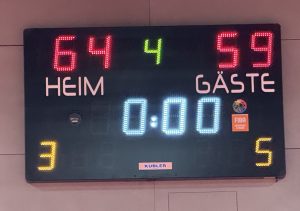 Nach einem starken ersten Drittel unserer Mannschaft kam Freiburg immer besser in das Spiel und verkürzte bis zur Halbzeit auf einen Punkt Rückstand. Auch im dritten Viertel waren die Freiburger immer gefährlich und konnten bis zu fünf Korbpunkte Vorsprung herausarbeiten. Doch im letzten Drittel hatten unsere Spieler die besseren Nerven und sicherten sich einen knappen Vorsprung, der über die Zeit gerettet wurde.