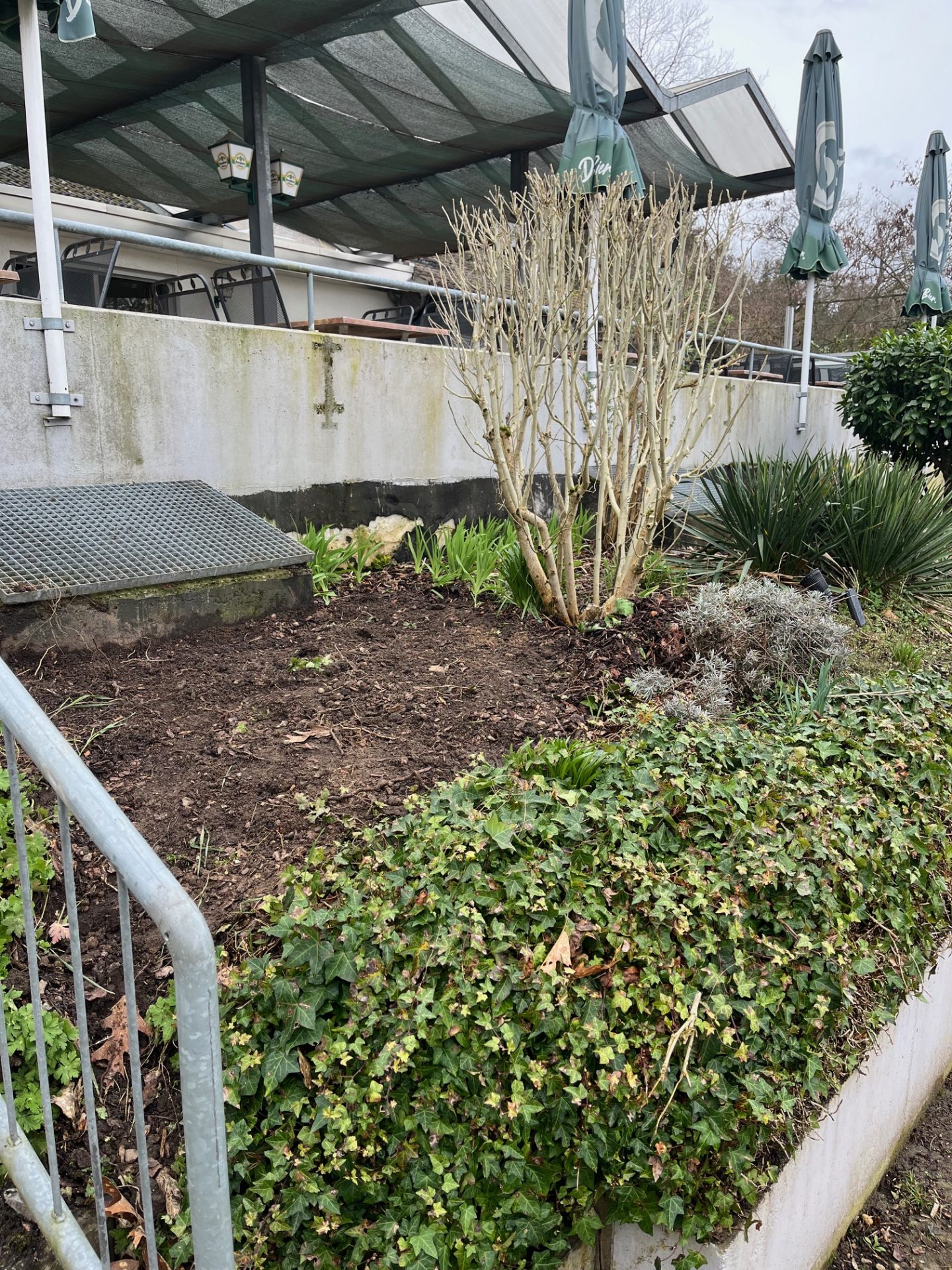 Außenpflege umfasste das Ausgraben des treppenseitigen Kirschlorbeer, die Entfernung von Laub am Tenniszaun zu Platz 1 und die Beseitigung der unteren Triebe an den Bäumen entlang des Kanalwegs. Letzteres gelang fast komplett, also auch am Platz 2. Am letzten Baum allerdings wurde der Arbeitstrupp abberufen, zur Verstärkung der Kegelbahn-Truppe, um dort den Asphaltguss komplett zu entfernen. Insofern ist ein bisschen was übrig geblieben, wird demnächst erledigt.