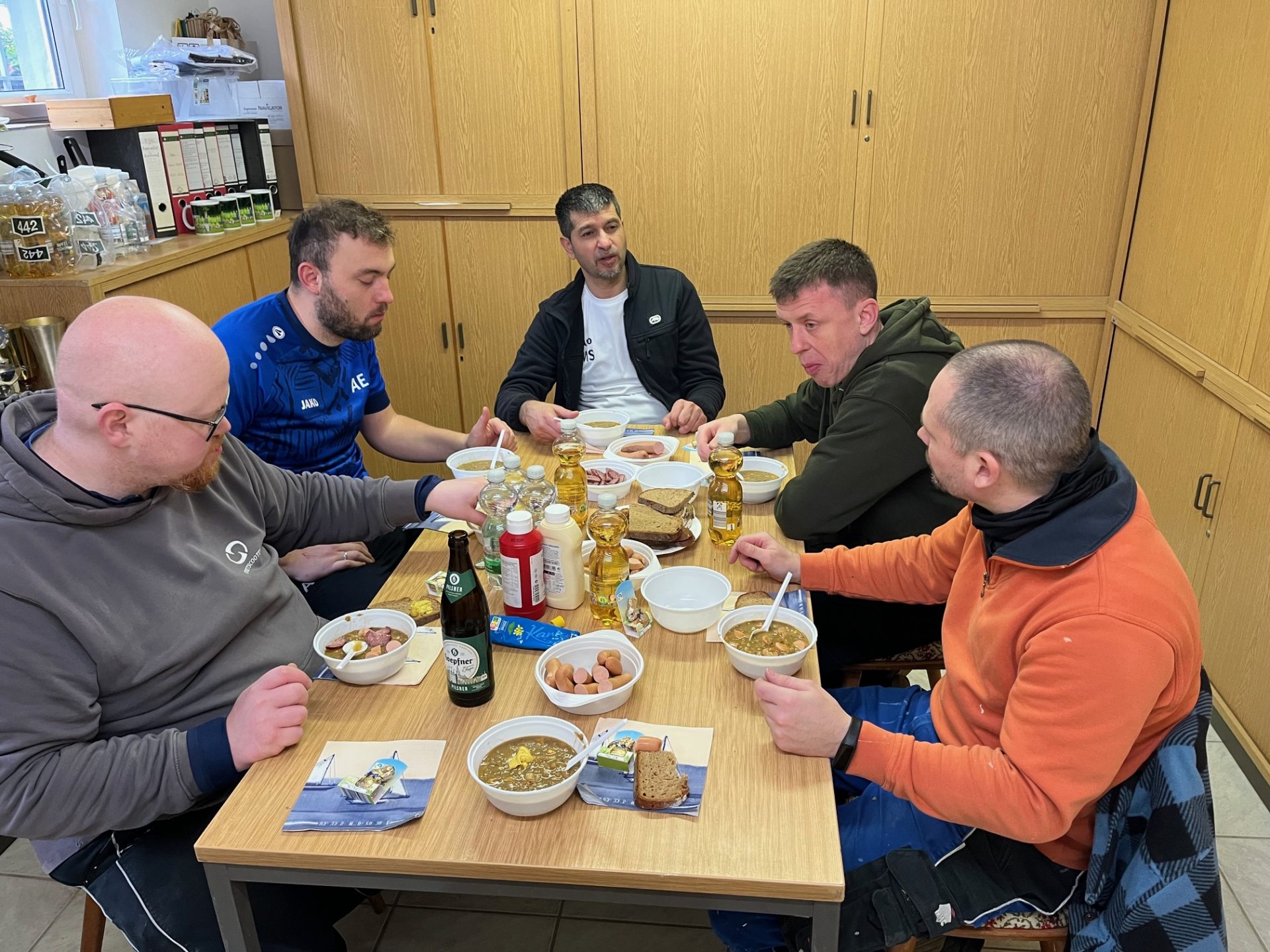 Am Samstag 17. März war es so weit, der erste Arbeitsdienst gleich mit großer Beteiligung: Andi, Andi, Vladi, Mehmet, Jonny, Heinz und Volker. Themen waren Außenpflege und Abbau der Kegelbahn.