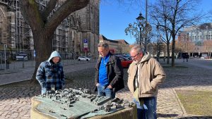 Am nächsten Morgen besichtigten wir den Dom zu Magdeburg. Auch imposant, beherbergt er doch die Grablege von Otto dem Großen. Deshalb auch Magdeburg Ottostadt. Und dann zum Stadion. Top Logistik zum Gästeparkplatz. Badisches Bier, bissle Vesper, und schon ging das Spiel los. Meist sahen wir blau-weiße Fahnen, aber das 1:0 und das 1:2 konnten wir gut sehen, die Einschläge der anderen Tore auch. Auswärtssieg. Unsere Serie ist gestartet.