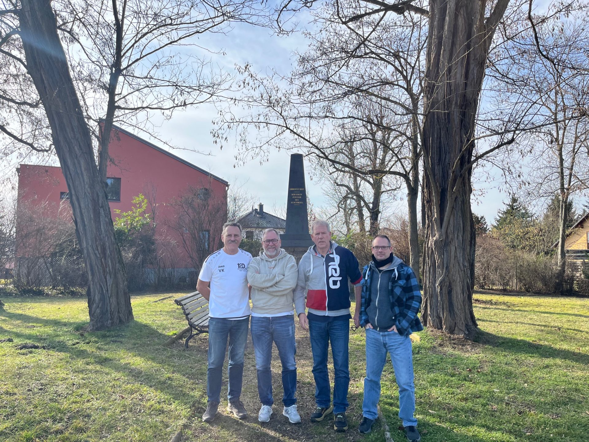 Danach dann nach Leipzig, besser gesagt nach Liebertwolkwitz, auch Wolks genannt. Dies war unser erstes Ziel. Nicht weil Hagens Opa da mal wohnte, nein, hier befindet sich der berühmte Monarchenhügel. Von diesem Plätzchen aus beobachteten die Monarchen der Napoleon-Gegner (Russland, Preußen, Österreich und Schweden) die Schlacht bei Leipzig (16-19. Oktober 1813). Achim von Arnim prägte wenige Tage später den Begriff Völkerschlacht bei Leipzig. Zurück zum Monarchenhügel in Wolks. Hier weilten damals die Monarchen Kaiser Franz I. von Österreich, Kaiser Alexander I. von Russland, König Friedrich Wilhelm III. von Preußen und der Oberbefehlshaber Karl Philipp Fürst zu Schwarzenberg. Diese 4 sind auf dem nachfolgende Bild symbolhaft dargestellt.
