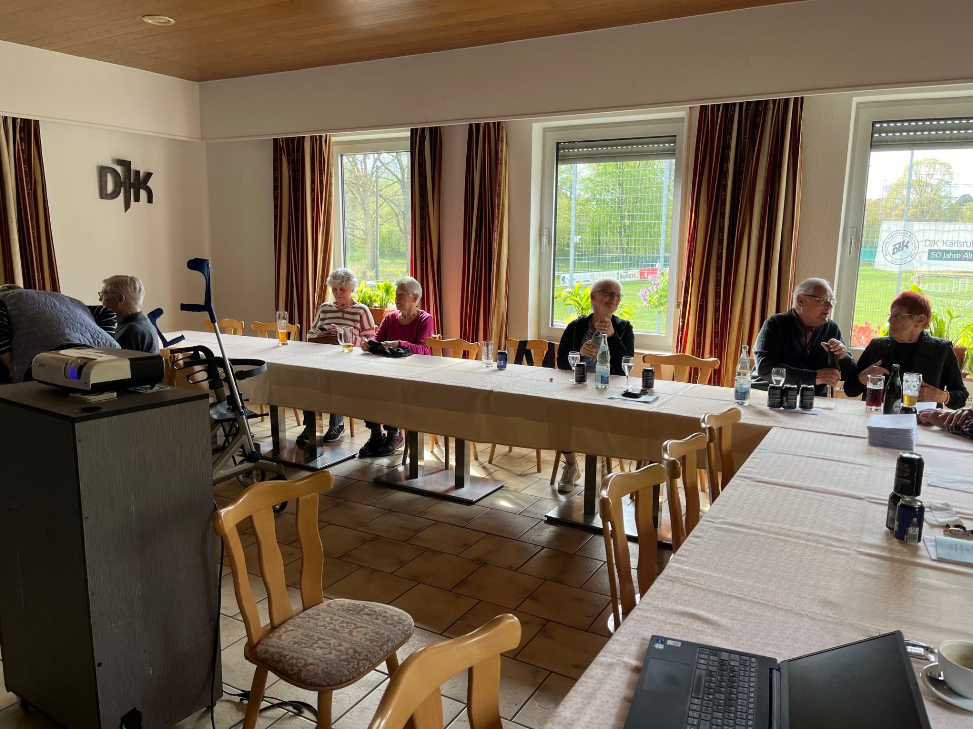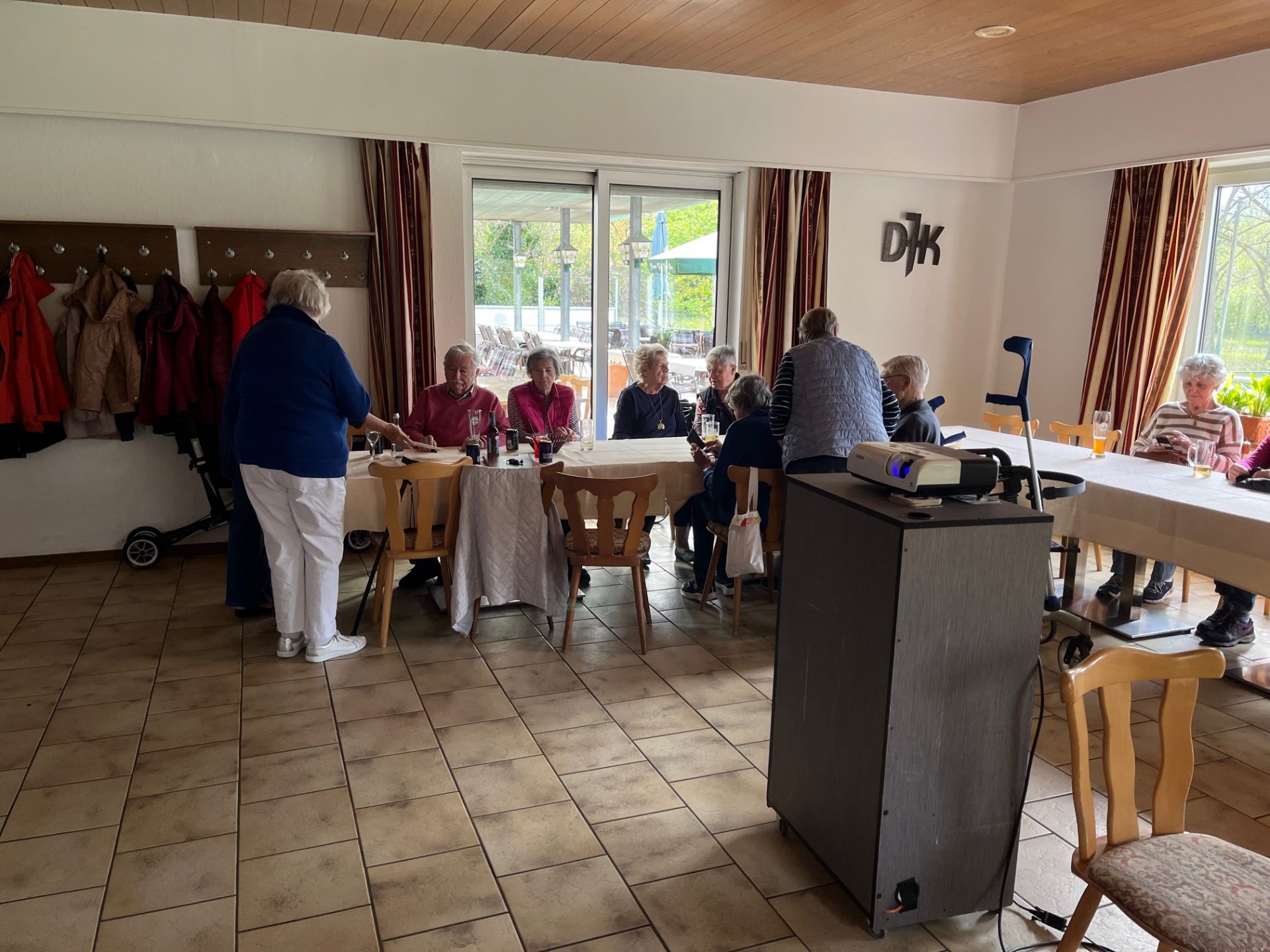 Am Donnerstag, den 16.4., traf sich der Seniorenkreis zur Veranstaltung im April. Der Leiter des Seniorenkreises, Volker Hartmann, war leider verhindert, ein wichtiges Treffen der Stadtwerke erforderte seine Anwesenheit. Und so begrüßte Carla die 20 Anwesenden im Nebenraum des Clubhauses. Carla bedankte sich bei Annebärbel für den Kuchen, bei Heinz für die Besorgung des Hefezopfes. Heinz konnte – sozusagen frisch aus der Vorstandssitzung – einige wichtige Termine bekannt geben, siehe die Liste unten.