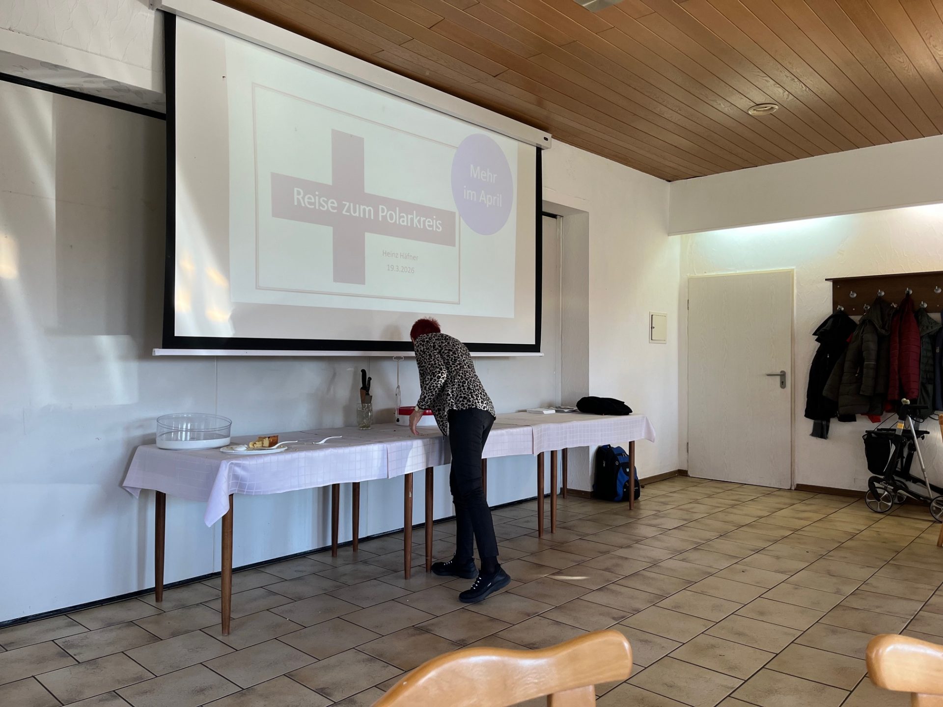 Um 16.00 Uhr kam dann auch (pünktlich) der Vortragende des heutigen Tages. Heinz erzählte von seiner Reise zum Polarkreis. In Finnland. Nahe der Grenze zu Lappland. Kuusamo. Rentiere zum Greifen nah. Wunderbare Natur lädt zu Wanderungen in den Nationalparks (Oulanka, Riisi Tunturri) ein, schönes Häuschen am See laden zum Verweilen ein. White-Water-Rafting ist auch möglich, wenn auch nah der russischen Grenze. Und der Polarkreis hat seinen besonderen Reiz, verspricht er doch Erholung ohne Trubel. Auf dem Rückweg dann ein paar Tage in Helsinki, dort ist schon wesentlich mehr los. Und Helsinki bietet die Möglichkeit zum Kurztrip nach Talinn, dem früheren Reval.